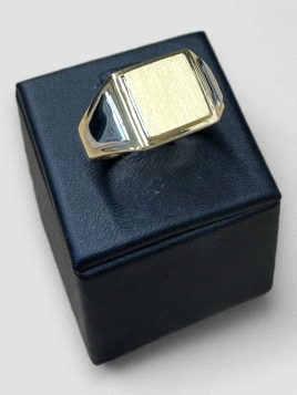 Anillo hombre Oro 18K tipo sello con detalle en oro blanco. Peso 8.8g