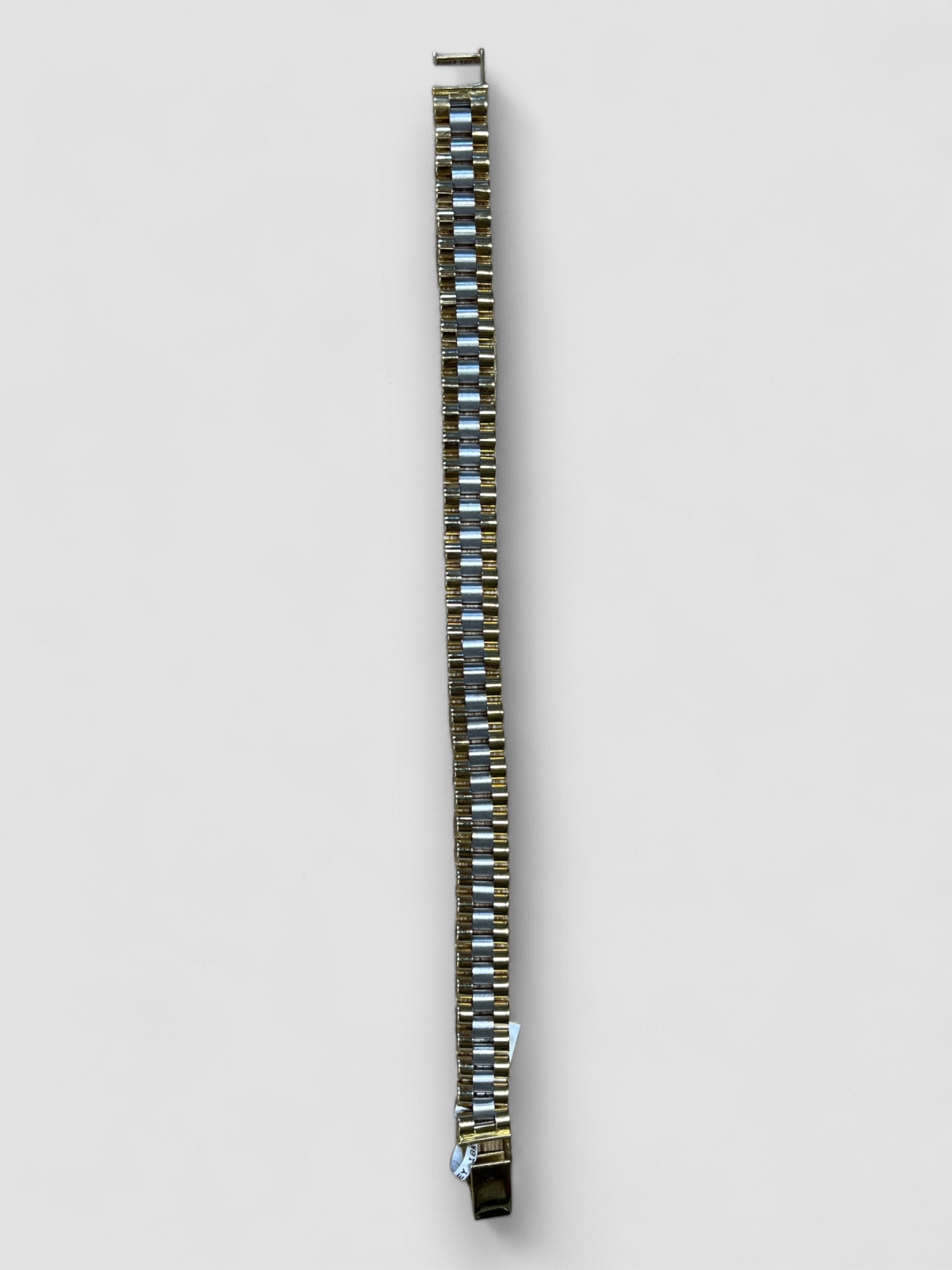 Pulsera Oro 18K estilo correa reloj con detalles en oro blanco. Peso 24g