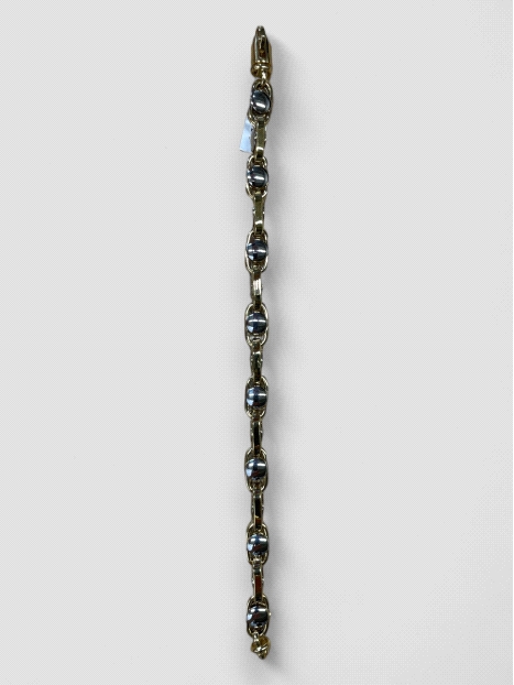 Pulsera Oro 18K estilo forzada con detalles en oro blanco. Peso 22.5g