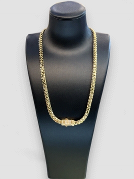 Cadena de oro barbada, hueca, en oro 18kl, un diseño perfecto, cierre con piedras. Largo 60cm. Peso 22.2gr